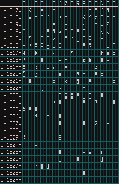 Figure 7.3 Liturgical Lilhian glyphs mapped to Nüshu's codepoints.
